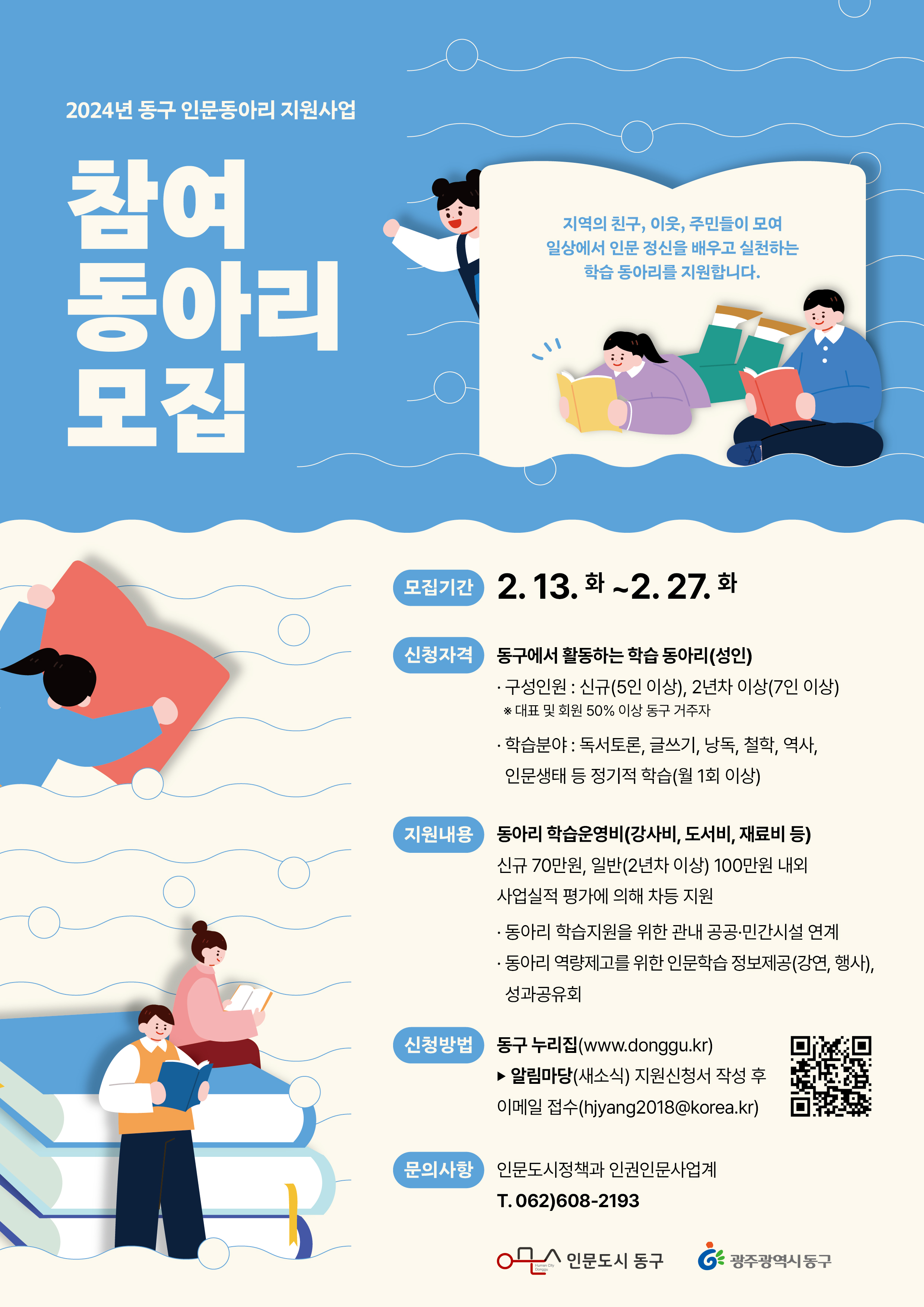 ❍ 대 상 : 청년, 직장인, 일반주민 등 최소 5인 이상 동구에서 활동하는 인문동아리