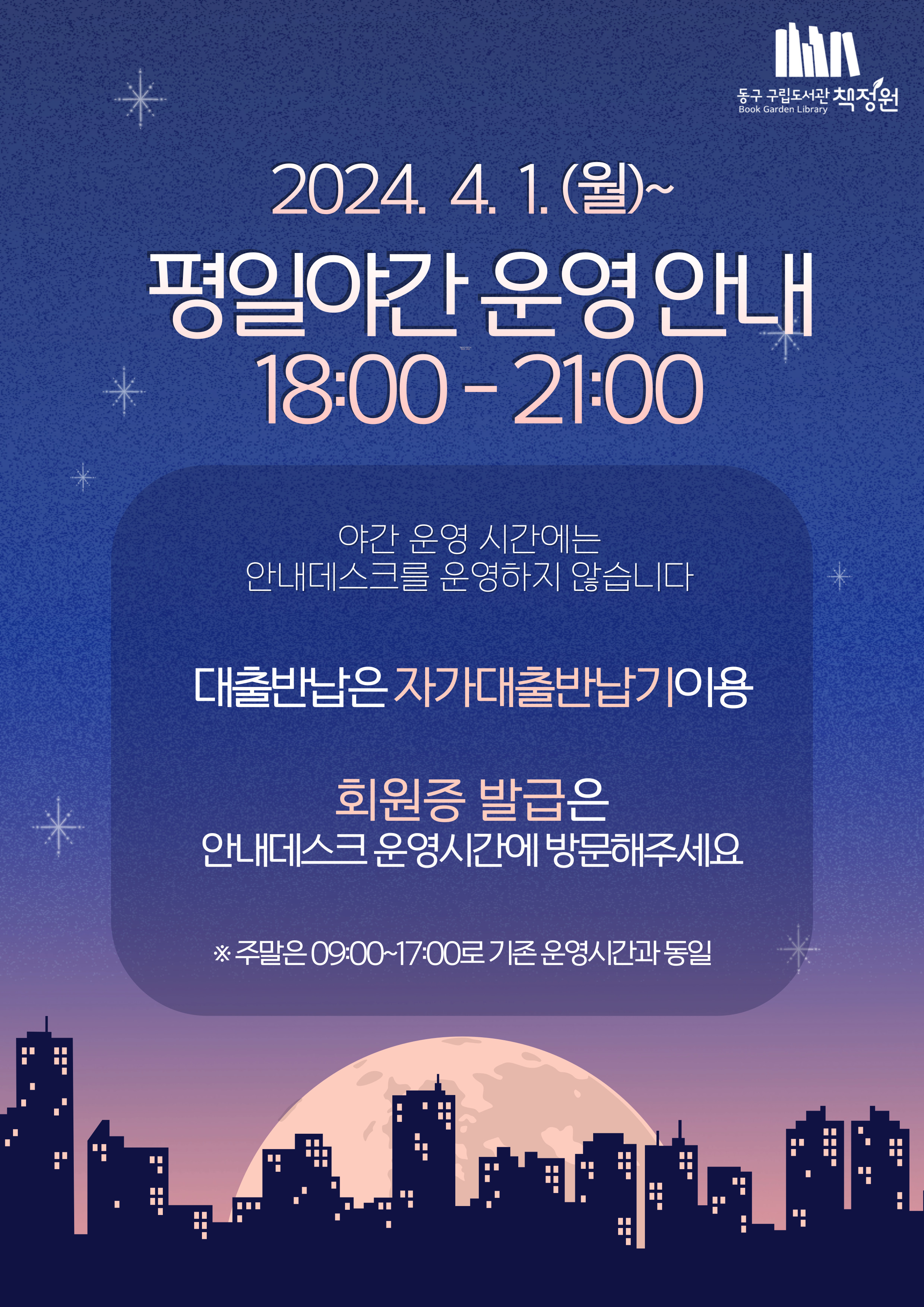 - (변경) 평일 09:00~21:00/ 주말 09:00~17:00